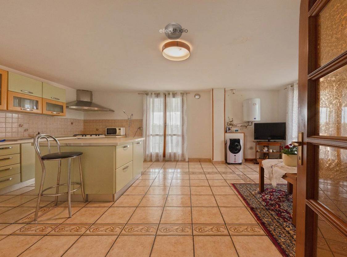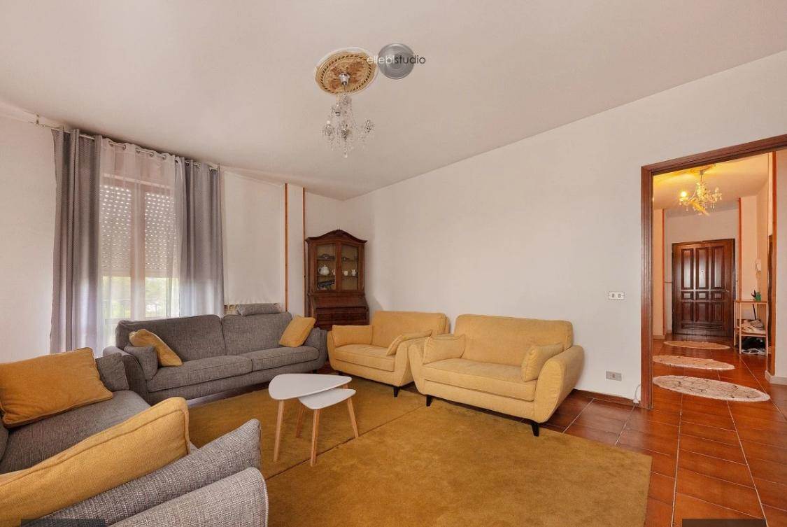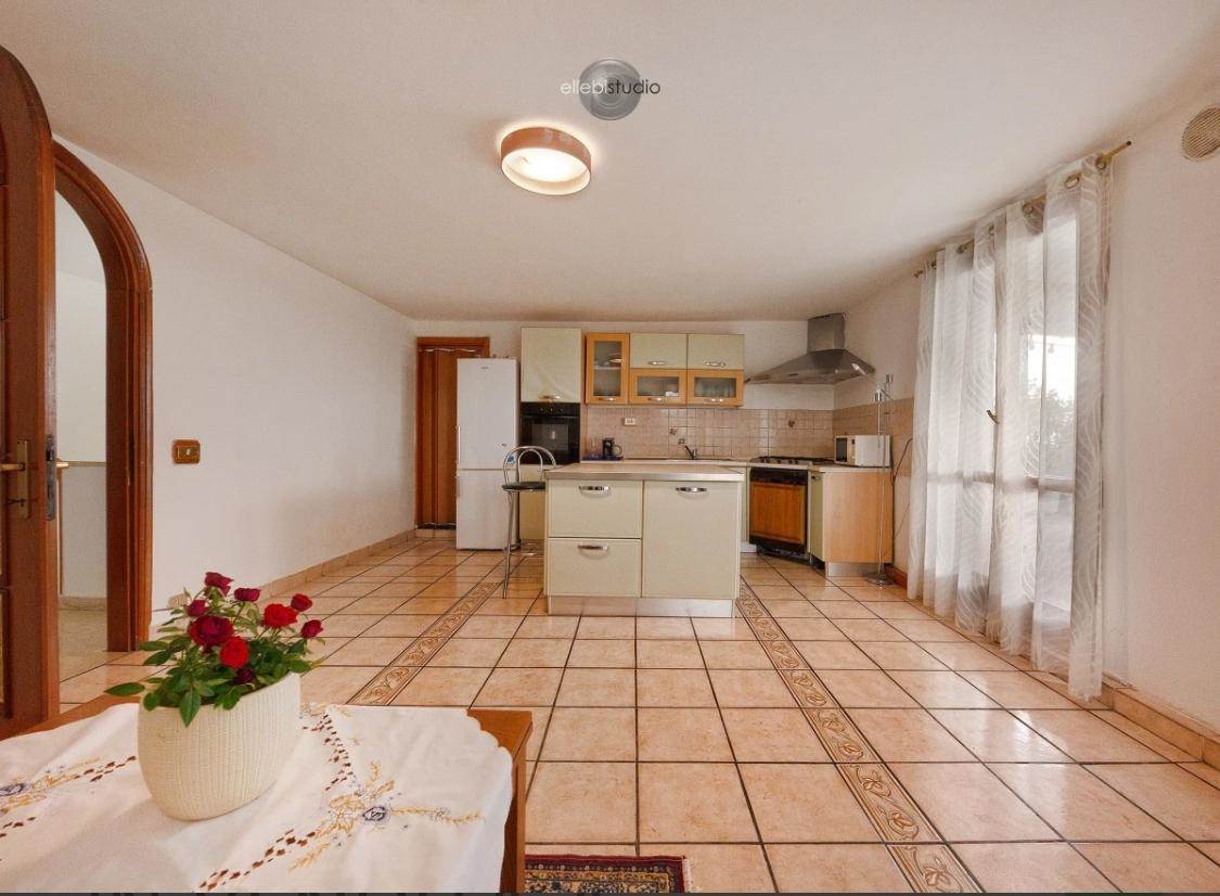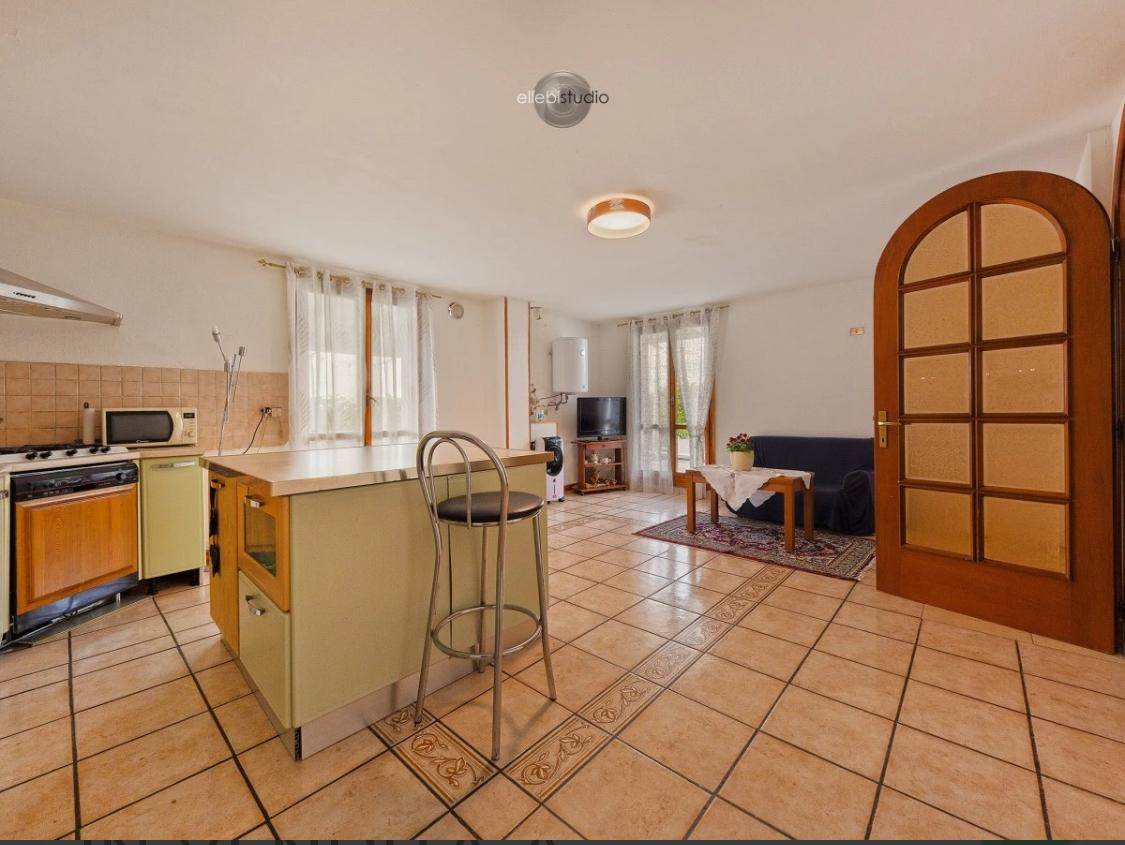 2 camere matrimoniale, 1 camera singola, 2 bagni, un ampio soggiorno con angolo cottura, un'autorimessa e un posto auto condominiale